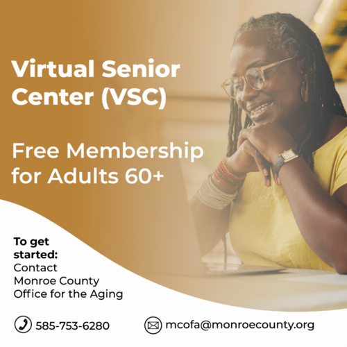 Virtual Senior Center (VSC) is an online community for connecting with others and sharing common interests. Members enjoy live classes and engaging entertainment in topic areas such as exercise, arts & culture, technology and training, music and games, history, news, travel and more. A recorded video library, games and person-to-person video chat are also available. Requirements: an up-to-date device, such as a desktop/laptop computer or tablet (iPad, Android tablet), a web camera and microphone, and an internet connection.