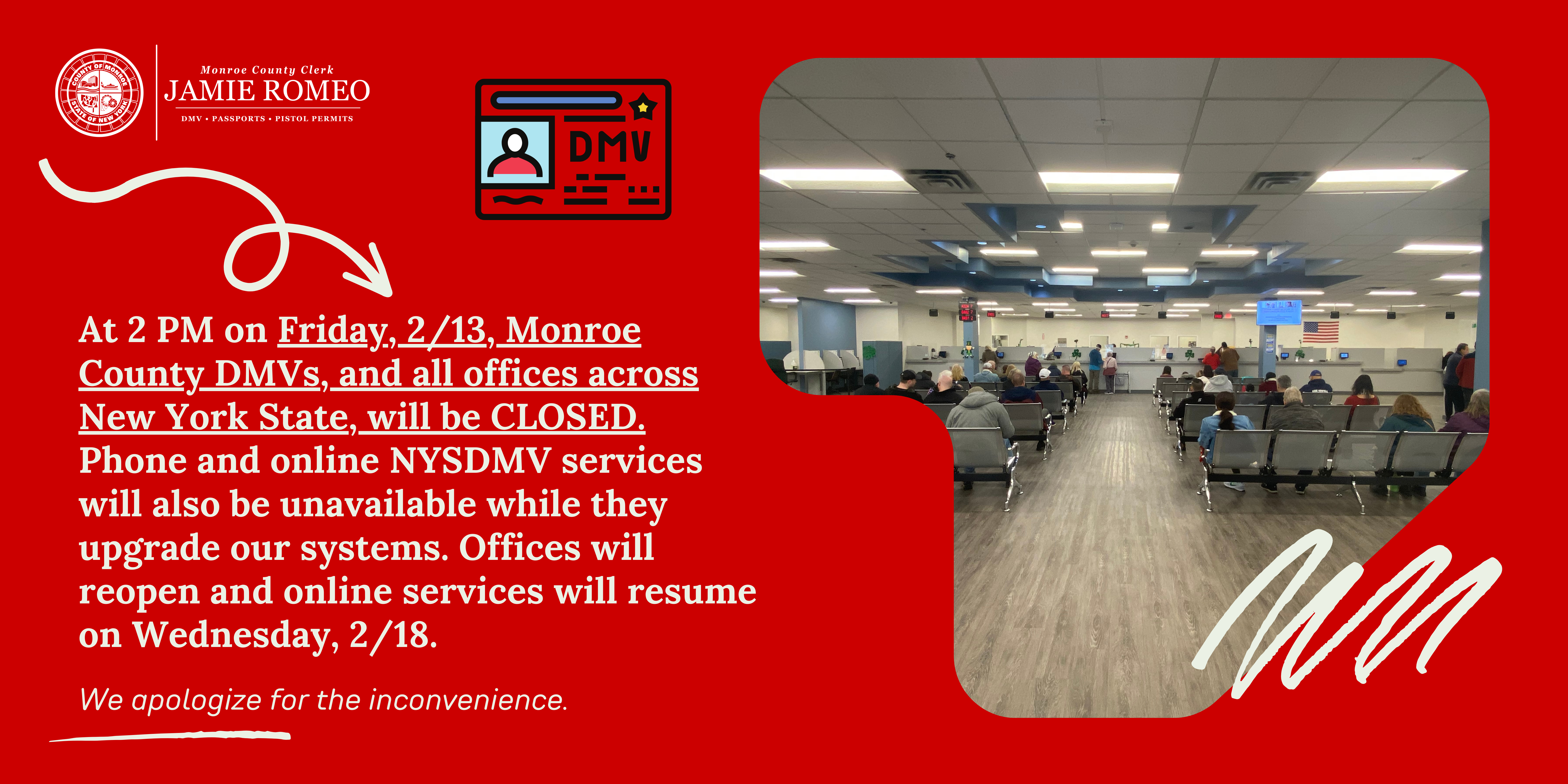 The Monroe County Clerk’s Office sells New York State fishing licenses and all other sporting licenses, such as small and big game hunting, bow hunting and turkey permits; - Motor Vehicle Agent