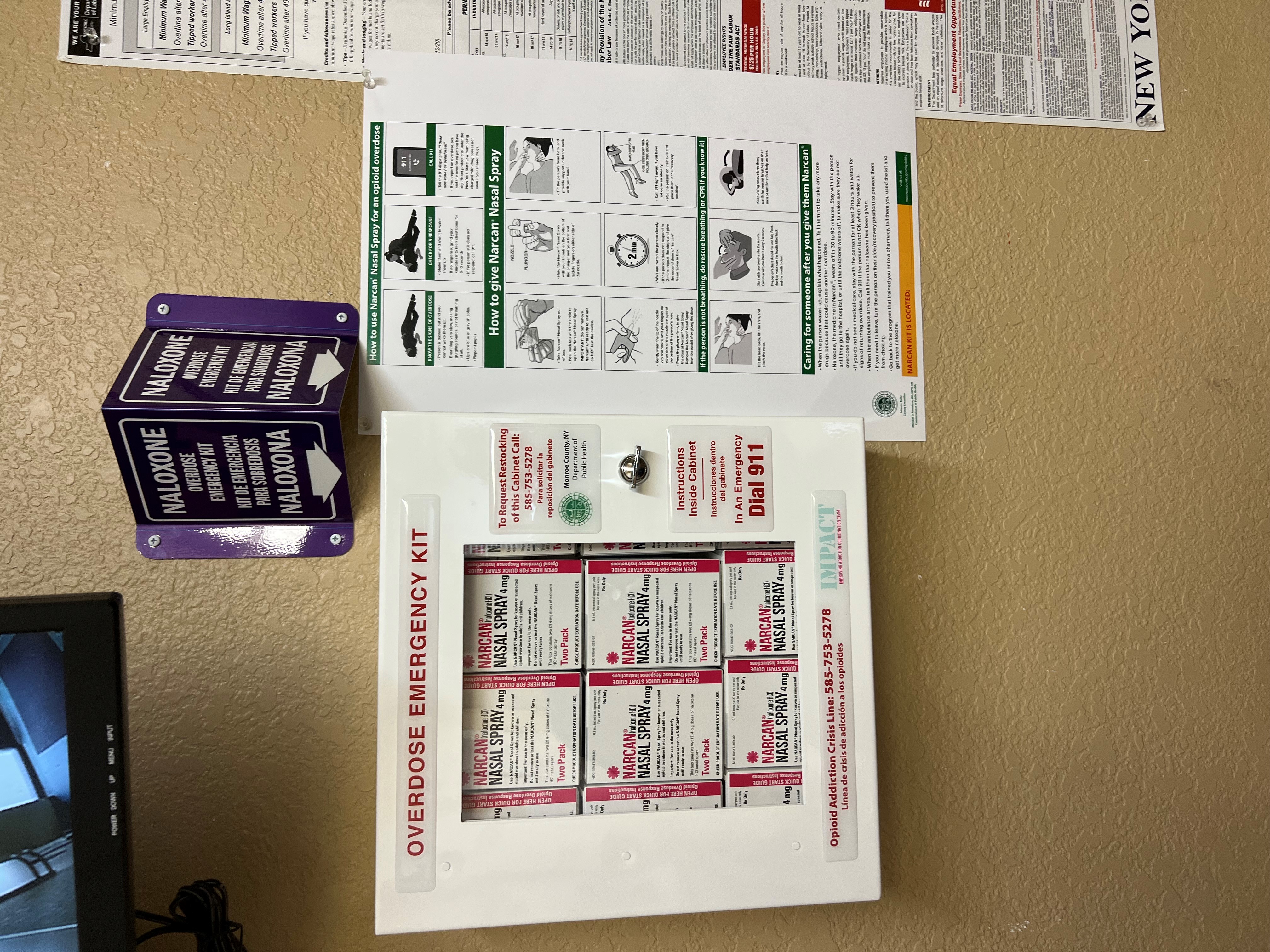 Our team installs, monitors and re-supplies Naloxone Boxes within Monroe County. Naloxone Boxes provide free, publicly accessible naloxone throughout Monroe County. To date over 600 Naloxone boxes have been installed in Monroe County. Find free Naloxone near you using our Naloxone Box Locator map.